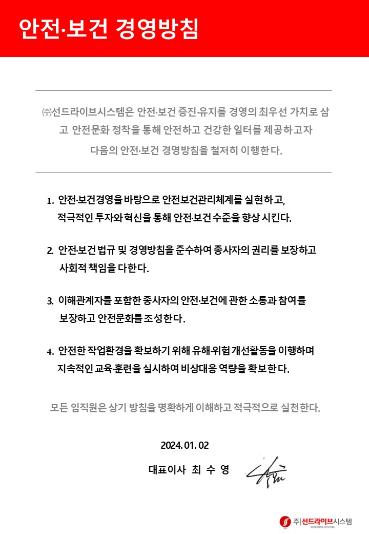 안전보건 경영방침
